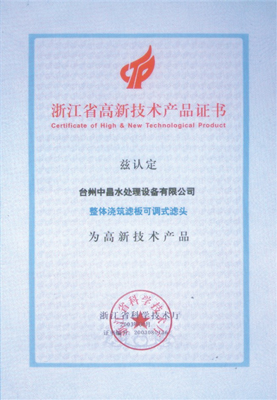 浙江省高新技術(shù)產(chǎn)品證書(shū)--濾磚