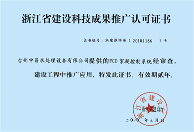 浙江省建設科技成果推廣認可證書(shū)--FCD絮凝控制系統